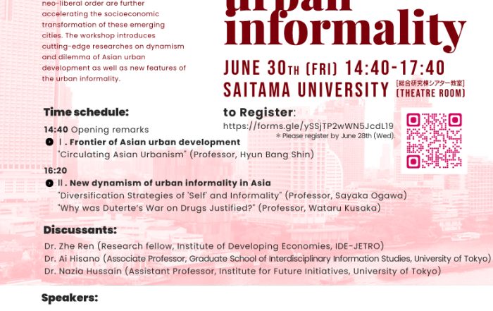 2023-12-03|Comments Off on International Workshop on“Asian urbanism and urban informality” was held at Saitama University (June 30th, 2023) and “When critical urban studies meet Asian studies: A dialogue on new directions of knowledge production in globalizing Asia”was held at University of Tokyo (July 1st, 2023).