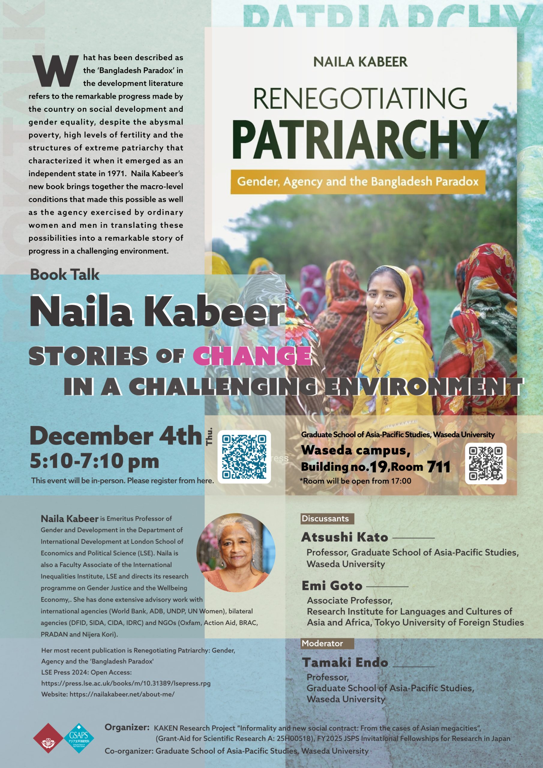 Speaker: Naila Kabeer (Professor  Emeritus, Department of International Development & Faculty of International Inequalities Institute, London School of Economics.)